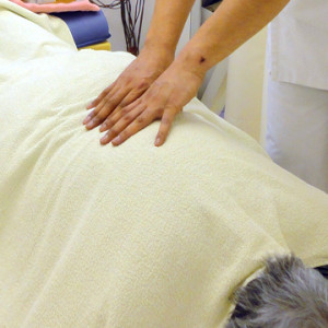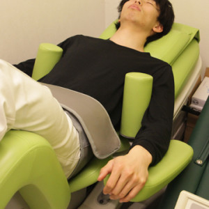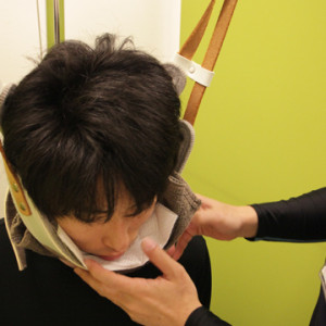 原因にもよりますが、電気、超音波、頚椎牽引(写真)、腕の空気圧機械が有効です。 シビレには暖めるのも効果的です。